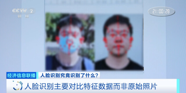 记者了解到,现在普遍使用的人脸识别技术,主要是对脸部特征数据进行采集,比如眉眼间距、颧骨轮廓等等,形成一个人脸特征的数据包,再上传到服务器进行比对。