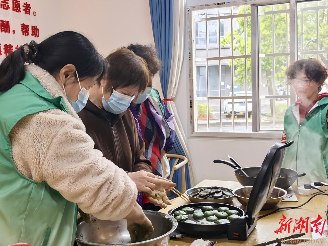 上午,月桂社区的青团制作活动温情满满。志愿者们备好新鲜艾草、糯米粉、豆沙等食材,细致讲解清明食青团的民俗渊源与制作诀窍。居民们围坐一起,两两协作、老手带新手,揉面团、包馅料、捏造型,指尖翻飞间,翠绿面团在掌心辗转成型,一个个饱满鲜润的青团陆续出炉,满屋飘香。活动还穿插清明民俗知识问答与文明祭扫倡议,倡导大家以绿色、环保的方式寄托哀思,用“指尖上的清香”替代旧俗中的烟火,让清明更显“气清景明”。随后,志愿者与居民将温热青团送至辖区高龄、独居老人家中,用暖心行动为民俗赋予温度。