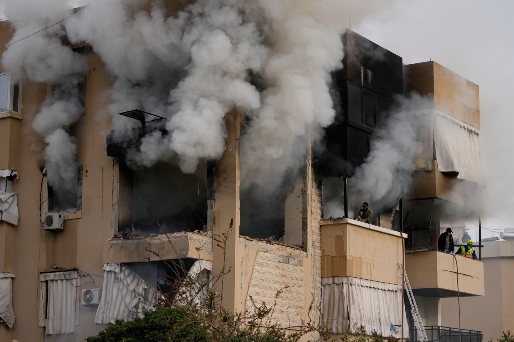 2月28日晚,以色列特拉维夫市区传出巨大爆炸声,有建筑物冒出火光。伊朗于当晚对以色列特拉维夫发动的导弹袭击造成一名女性死亡、多人受伤。新华社 图