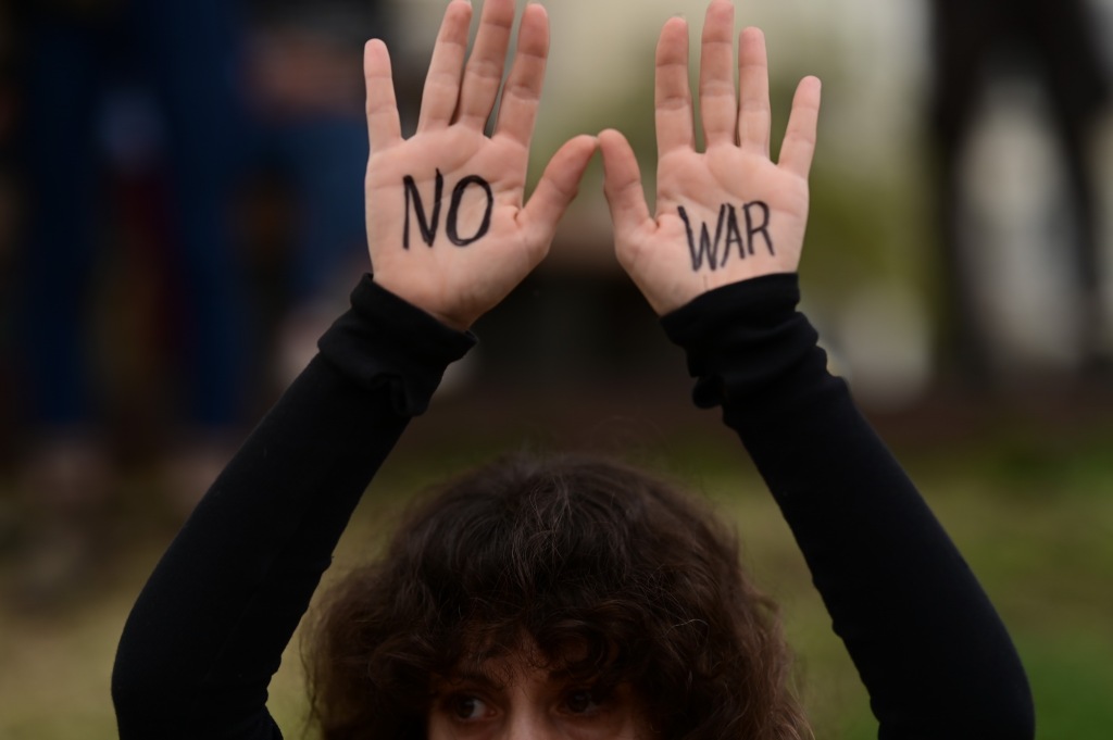 3月14日,人们在特拉维夫一处广场举行集会,抗议美国和以色列军事打击伊朗,要求美以停止一切战争行为。新华社 图