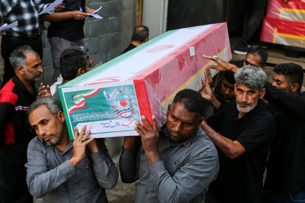 3月3日,伊朗米纳卜,人们为遭到美以空袭小学的遇难者举行葬礼。新华社 图