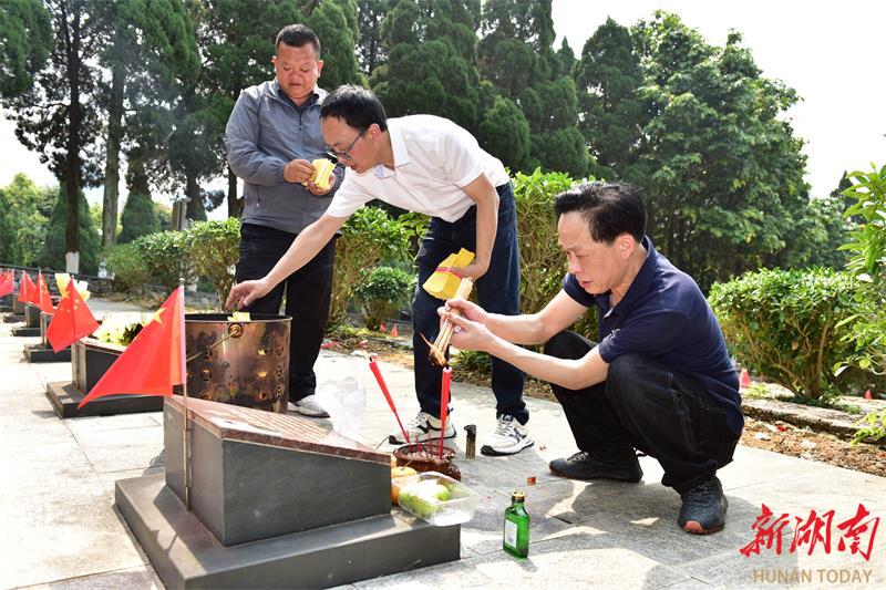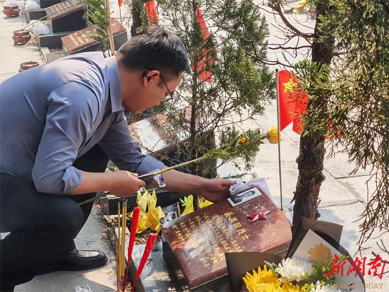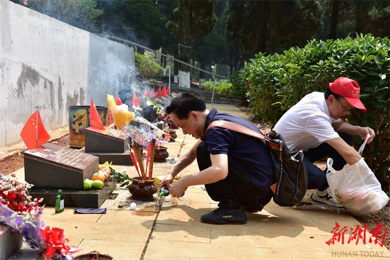 除烈士亲属之间自发的代祭扫外,长沙市退役军人事务局党组成员、副局长邱献波带领局工作人员,为不能亲赴的烈士亲属提供代祭扫服务,让哀思得寄,让烈士英灵得以告慰。