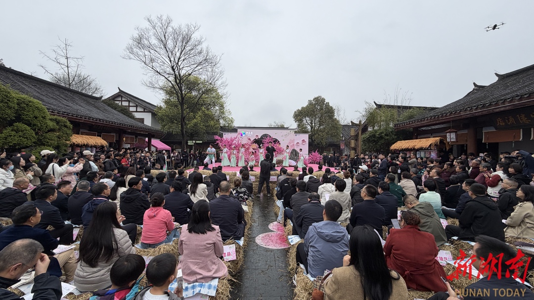 活动设置“花神信物”集邮式打卡,游客集齐印章可兑换桃花头箍、手环;簪花礼、点额礼等,沉浸式互动。升级版擂茶餐秀《桃·礼宴》将纱幕投影、沉浸式音乐与情景舞蹈融合,常德擂茶与微型演艺剧情结合,打造“可观、可品、可忆”文化用餐体验。