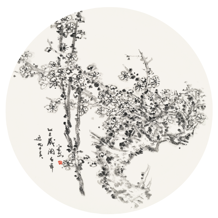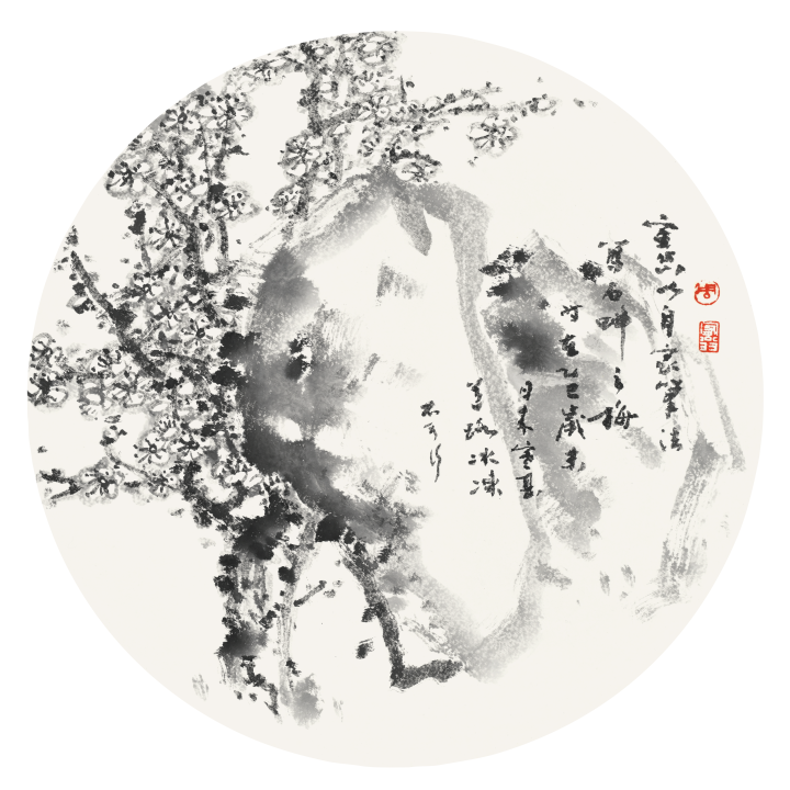《圆形梅花》直径25cm 纸本水墨
