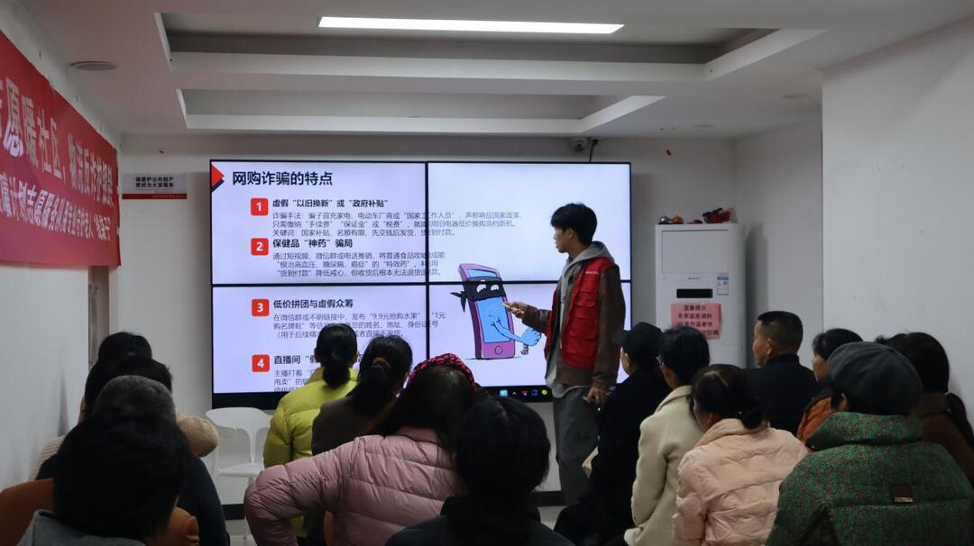 与此同时,另一场“守护夕阳红”物流安全宣传活动也在社区活动室火热进行。师生们通过展板展示、发放宣传单、情景模拟等方式,向老人们重点揭露“到付诈骗”“冒充快递员诈骗”“虚假中奖快递”等常见套路。他们编排的情景剧生动演绎了诈骗过程,老人们看得认真、听得仔细,不时点头称赞。活动当天,共发放《防范物流诈骗指南》宣传资料200余份,解答咨询60余人次,为社区老人的“钱袋子”筑起了一道安全防线。