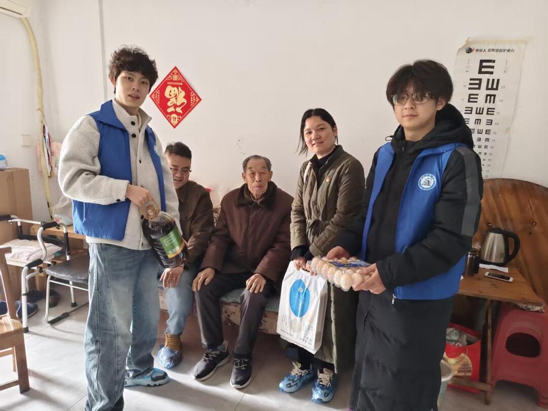 活动最后,师生们还分组深入社区高龄老人及困难空巢老人家中进行走访慰问。大家为老人们送去慰问物资,详细了解他们的生活困难,帮助更换灯泡、记录代买需求,留下“爱心联系卡”,用真诚的陪伴传递温暖与关怀。