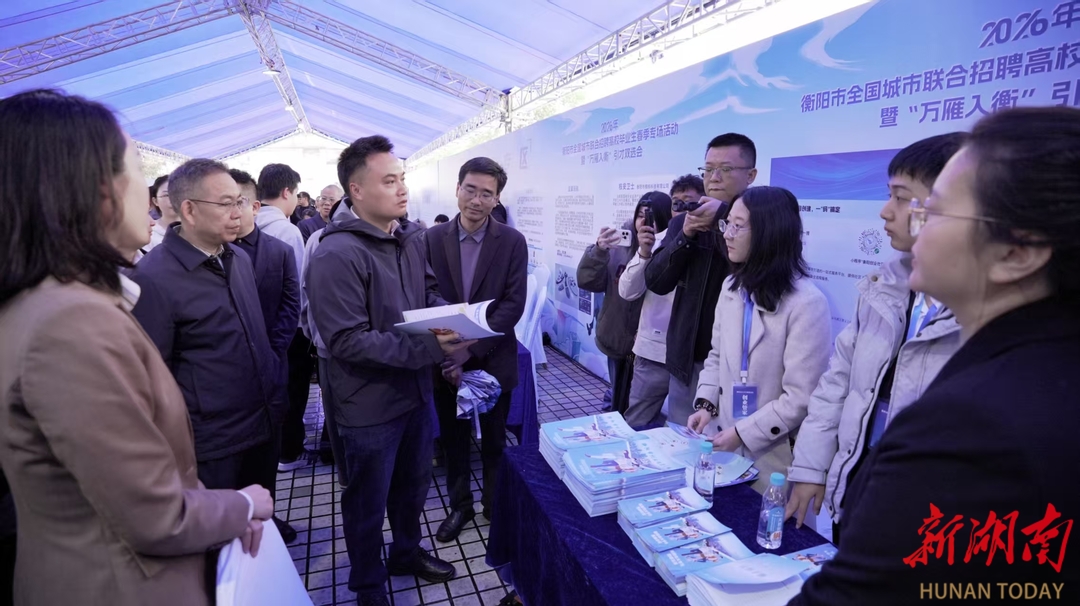 湖南日报·新湖南客户端3月28日讯(记者 陈鸿飞 通讯员 刘文文 蒋杰 申弘)春雨潇潇,挡不住莘莘学子求职的脚步。3月28日,衡阳市2026年全国城市联合招聘高校毕业生春季专场活动暨“万雁入衡”引才双选会在南华大学红湘校区启幕。“我擅长工程制图、三维设计等专业。”南华大学机械制造专业学生曾杰扬着手中的招聘协议:特变电工是我心仪的企业。工资、待遇合适的话,他想留在衡阳扎根。