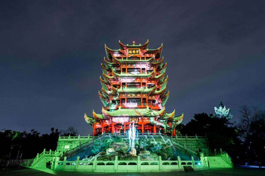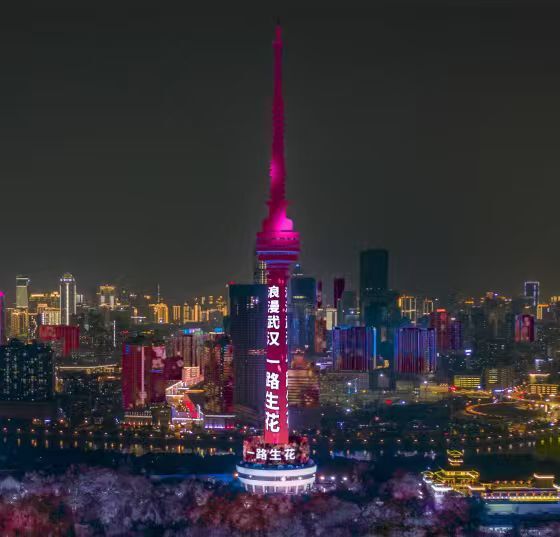 “长江之夜”樱花主题灯光秀,武汉龟山电视塔“一路生花”