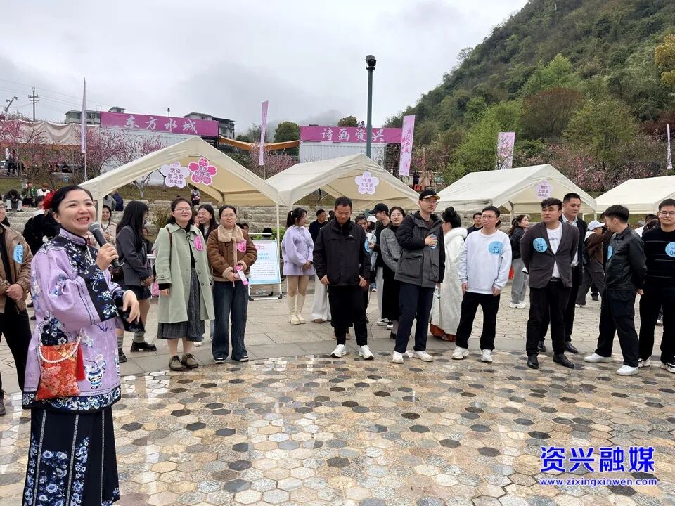 徒步进行的同时,桃花广场上的趣味活动持续升温。媒婆说媒环节中,诙谐幽默的互动引得现场笑声不断;嘉宾相亲环节里,参与者们在轻松的氛围中交流互动,现场温馨而热烈。徒步竞赛奖、优胜奖、活动参与奖以及传播流量奖、服饰创意奖、最佳上镜奖等奖项的评选同步推进,大家纷纷拍摄视频、分享朋友圈,用镜头记录徒步乐趣与白廊美景,进一步放大了活动的影响力,为活动增添了竞技的激情与收获的喜悦。