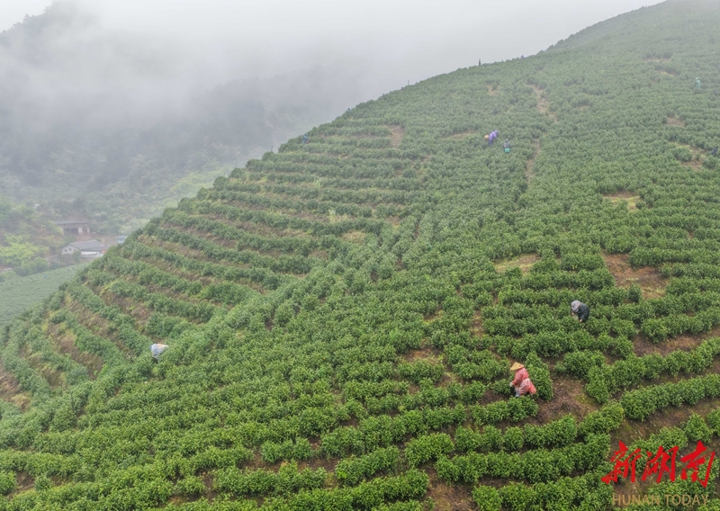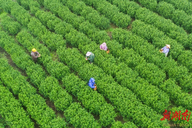 3月28日,江华瑶族自治县桥市乡大鱼塘村,茶农在采摘明前茶。清明临近,当地茶园迎来采摘高峰,茶农加紧采收加工新茶供应市场。目前,该县茶叶种植面积已达7.2万亩,带动5万余人就业。“江华苦茶”品牌价值达5.23亿元,年产值4.03亿元。当地正通过生态种植、精深加工、品牌营销和茶旅融合等方式推进茶产业升级。蒋克青 杨丁香 摄影报道(湖南图片库)