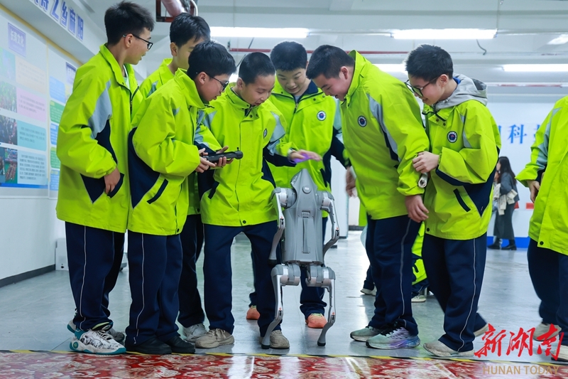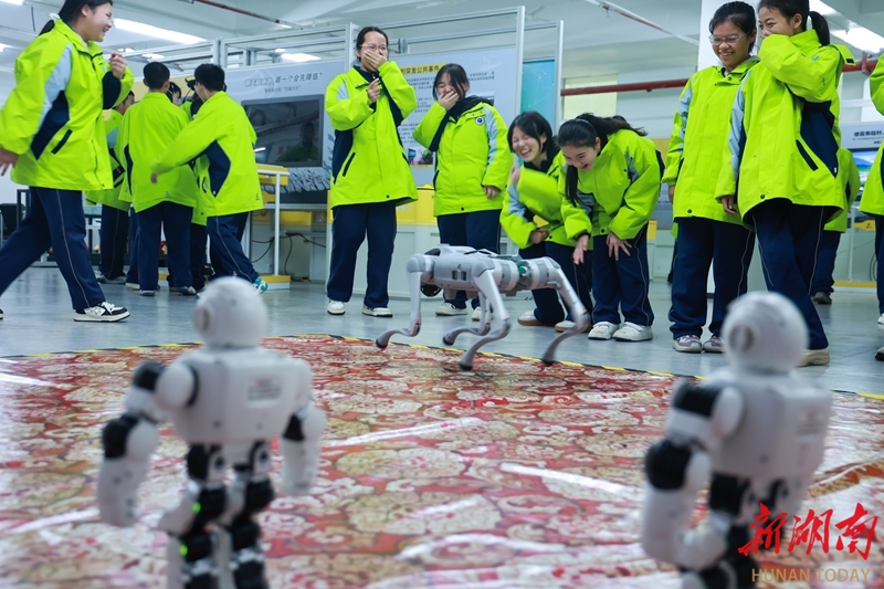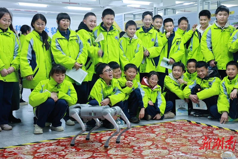 3月27日,麻阳苗族自治县民族中学学生在县科技馆开展科技实践活动。学生们通过操作机器狗、机器人等,以互动体验的方式学习科学原理,感受科技创新的魅力。滕树明 摄(湖南图片库)