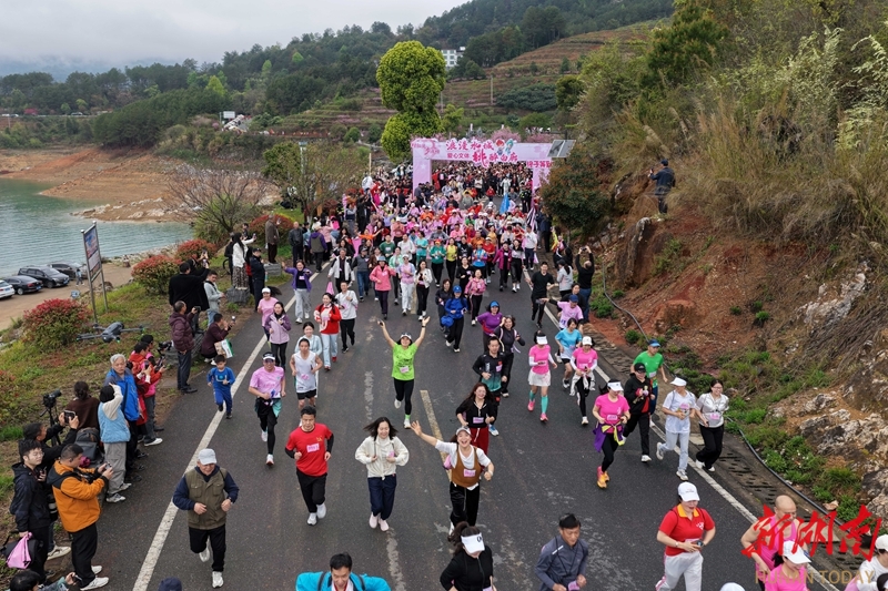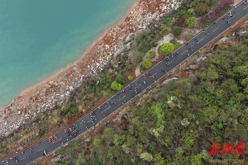 3月28日,资兴市白廊镇环湖公路,选手在参加徒步活动。当天,该市举行“浪漫水城·桃醉白廊”爱心文体粉红徒步活动,2000余名市民游客沿环湖公路徒步,沿途欣赏桃花、青山、碧水构成的春日美景,邂逅湖光桃色的浪漫。李科 何洪海 摄影报道(湖南图片库)