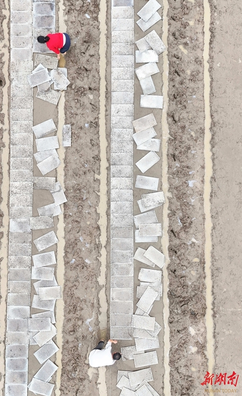 3月28日,江永县潇浦镇,农民在早稻秧田摆放秧盘。春分过后,天气回暖,当地农民抢抓农时开展春耕春播生产,田间地头一派繁忙景象。田如瑞 摄(湖南图片库)