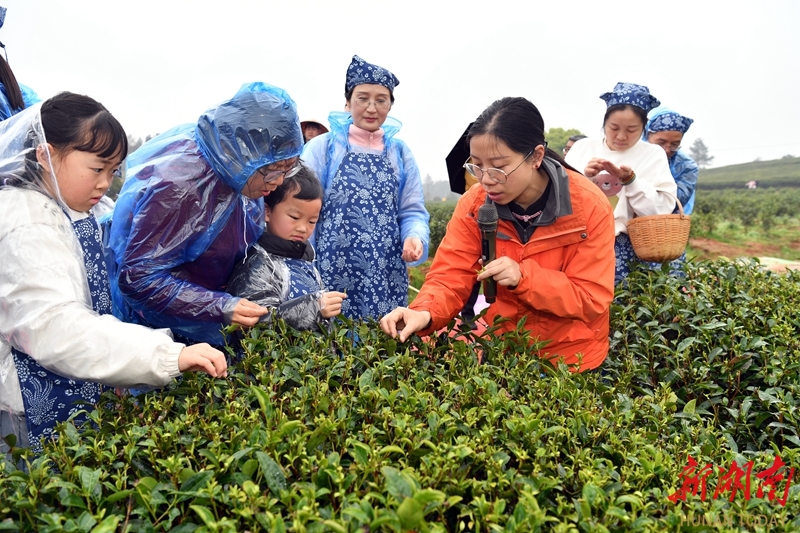 3月28日,浏阳市淳口镇华盛乐园景区茶园,游客在学习采茶技巧。作为国家AAA级旅游景区和长沙市中小学生茶文化研学实践基地,该景区近年来依托特色茶文化资源,开展采茶制茶、茶艺表演等多元化活动,让游客特别是青少年在实践中感受茶农生活、学习茶知识,传承中国茶文化。湖南日报全媒体记者 田超 王文 摄影报道