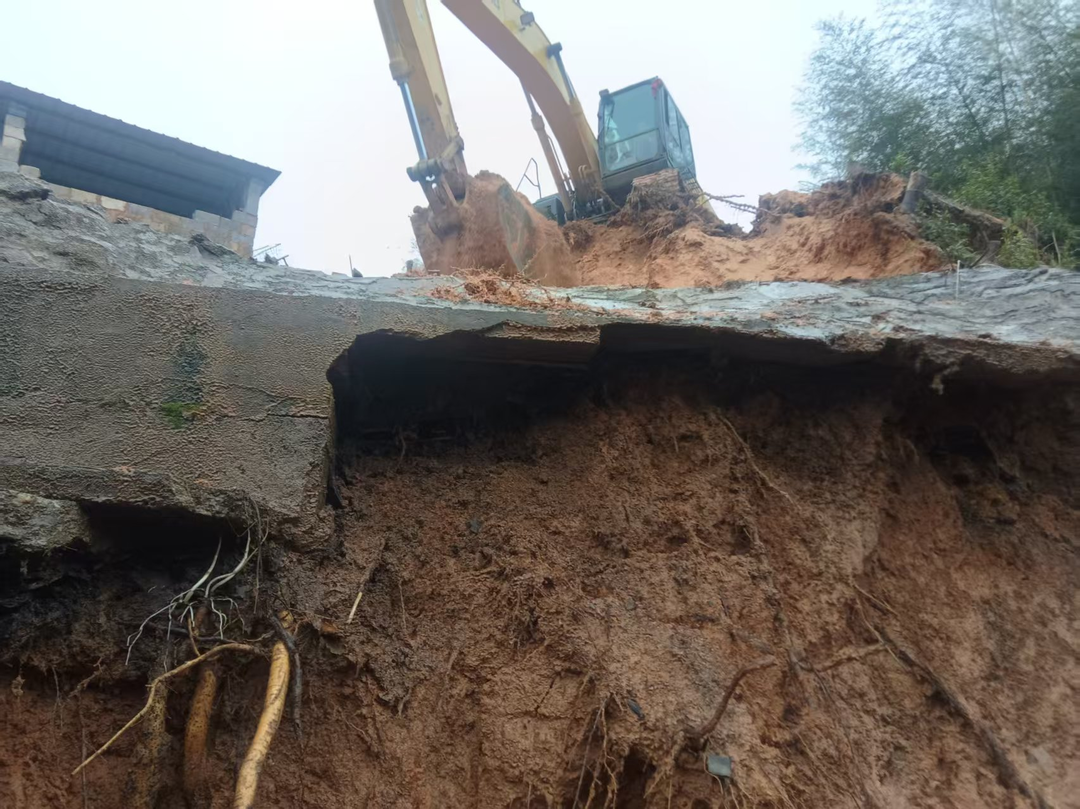 镇应急办工作人员迅速赶赴现场处置,经现场核查发现,大量泥土、石块及树木已滑落至公路旁,严重阻碍正常交通通行,随即联合村干部开展应急处置,快速对周边道路进行交通疏导,划定危险区域、设置警示标识,严禁无关人员及车辆进入。15时,险情扩大导致道路无法通行,镇村干部调度工程机械进场进行处置。