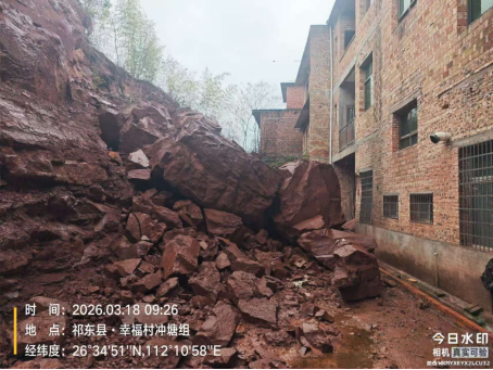 24日凌晨1时许,吴祖坤屋后巨石滚落,砸毁附属房屋一间。因精准研判、果断处置,1户3人成功避险。