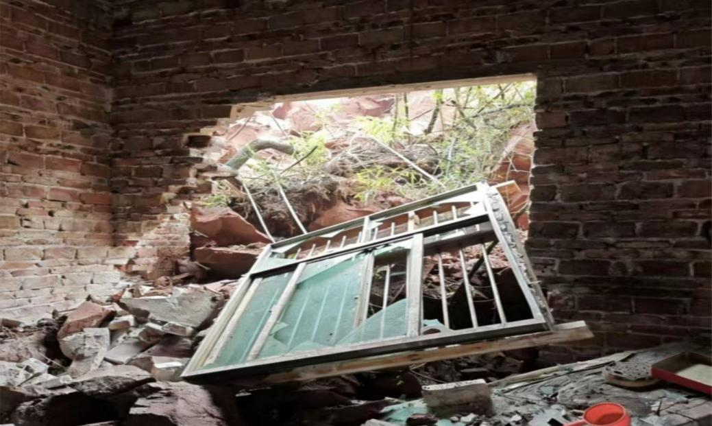 15时12分,该处发生岩体崩塌,一块巨石滚落直接砸穿该户卧室墙体。因预判精准、上报及时、转移果断,未造成人员伤亡。
