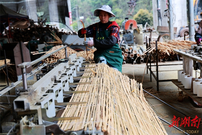 The photo shows workers busy processing bamboo products in Linkou Village, Wanfoshan Town, Tongdao Dong Autonomous County. In recent years, the county has leveraged its rich bamboo resources to vigorously develop the bamboo deep-processing industry, producing eco-friendly products such as "bamboo as a substitute for plastic" series. This initiative has effectively helped local farmers get employed and increase their income without leaving their homes. (Photo/Shi Menglei)
