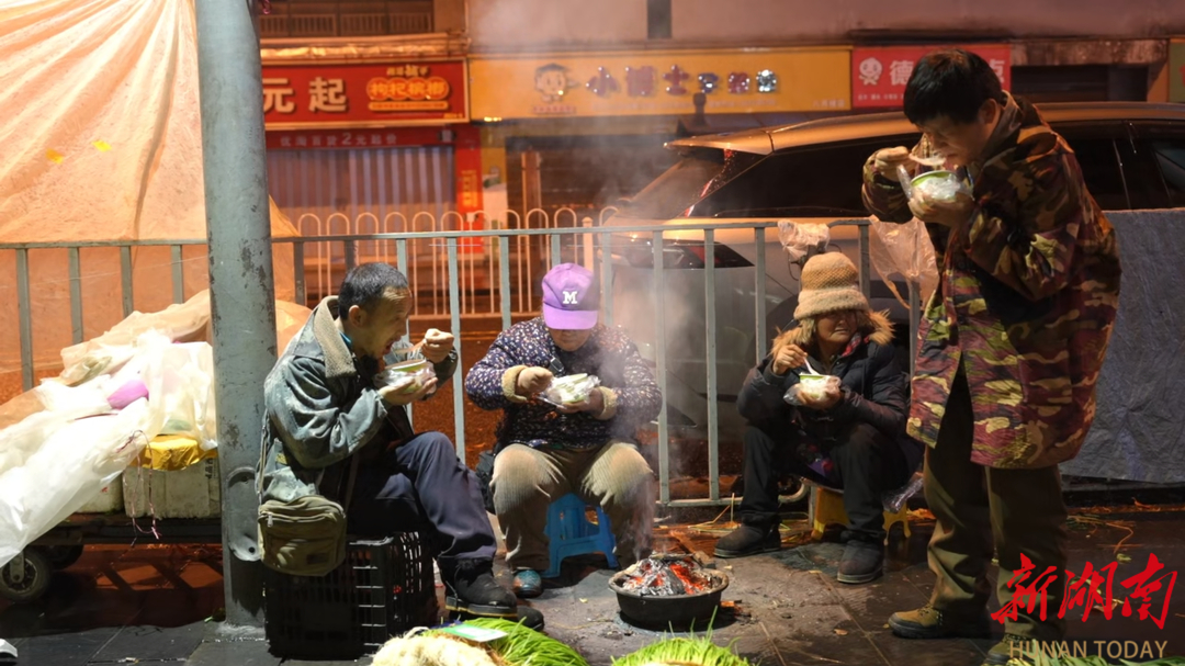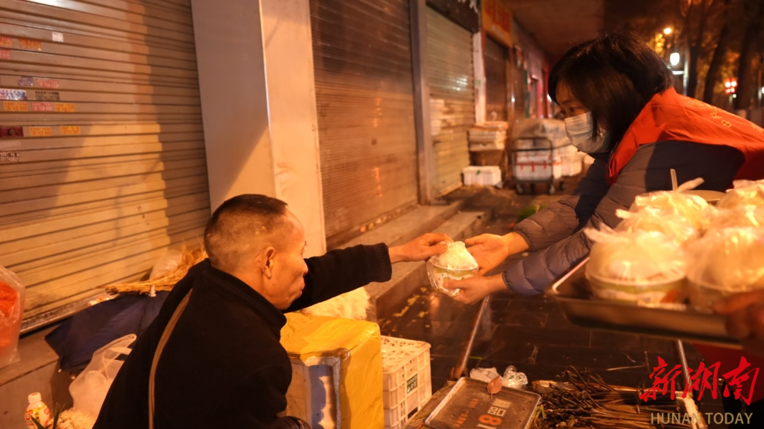 “晚上11时就出来摆摊了。”63岁的菜农田秀云笑呵呵地接过粥碗。志愿者又搬来一张免费租借的便民椅,这种椅子既能坐着歇脚,也能放平躺着,很是实用。田秀云舒舒服服地躺了上去,一手端着粥碗,一手朝志愿者竖起大拇指:“躺起来好舒服,你们献爱心、关心我们老百姓,让我们吃得暖心又香甜。”在疲惫奔波的夜晚,一碗温热的粥,一张可躺可坐的椅子,是果腹的温暖,更是直抵心底的慰藉。