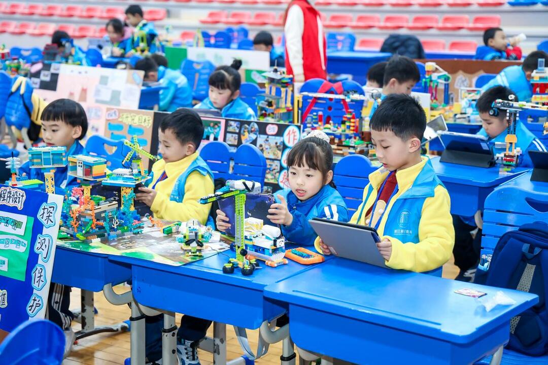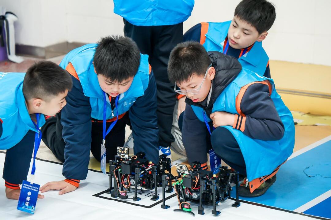 比赛现场气氛热烈,“科创小达人”们各显神通。在智能机器人(可编程控制的空中飞行器)赛区,选手们熟练操控无人机穿越环形障碍;在轮式或履带式行走机器人赛区,队员们紧密协作,编写程序、控制机器人巡航走线,顺利完成相关任务;在智能博物赛区内,选手们专注地盯着显示屏,手指在键盘上快速跳动,让机器人精准流畅地执行各项指令……从编程思维的微光闪烁,到机器人竞技的热血沸腾,从AI创作的灵感迸发,到项目协作的默契同心,孩子们在实践中锻炼能力、收获成长。