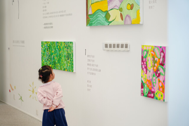 据悉,本次展览共展出刘云帆绘画作品涵盖油画、丙烯等多种绘画媒介。画作《萤火虫花》,成为贯穿展览的视觉符号——那些在暗夜中闪烁的微小光亮,也构成了青年画家独特的语言系统。刘云帆的画大胆天真,因为头脑中没有栅栏,没有人情世故,画什么都不拘一格,只为用颜料表达他无法用语言表达的内心世界,尤喜欢画饱满强壮的雨滴、鲜艳粗野而不知名的花、色彩和形状极其夸张的星空、简单艳丽的梦幻般的大西北等。从《牵骆驼的人》到《萤火虫花》系列,观众可以清晰看到一位年轻画家如何在绘画中完成自我疗愈,并与父亲的诗歌形成深层的互文与对话。正如题记所言:“在荒芜的画布上,无拘束的萤火虫花,其实也是一辆轰隆隆的不可阻挡的摩托车。”