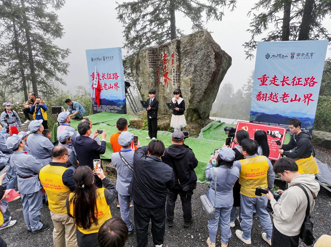 最令人动容的是“重走长征路 翻越老山界”访野茶环节。参加活动的茶文化头部自媒体达人、主流媒体记者一行身着红军服装,沿四千余年的湘桂古道前行。行至老山界,重温陆定一《老山界》与谭谈《春走老山界》选段,齐唱《我和我的祖国》。红色的记忆与绿色的茶山在此交相辉映。