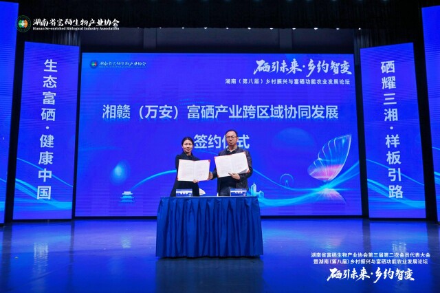 论坛上,湖南省富硒生物产业协会与江西省万安县农业农村局签署湘赣产业协同发展协议,为富硒产业在更大范围内整合资源、对接市场、共建标准拓展新空间。