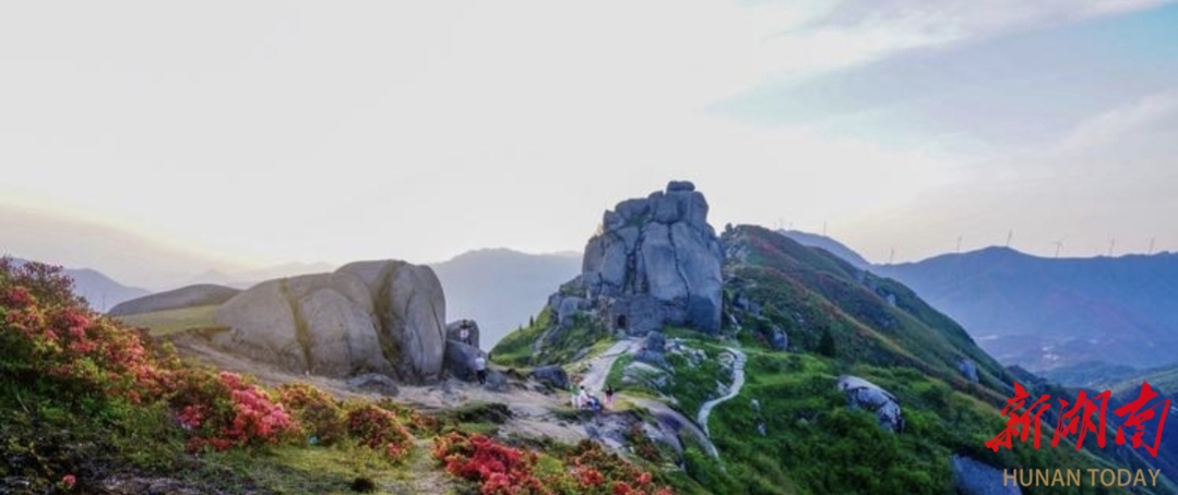 天地有大美,藏于白水仙山。当人间春色渐远、花事阑珊,唯有此处,在海拔千二米之上揽云为袖、裁花为裳。天堂山、紫鼎山、扶苍山一脉三峰,横亘湘南,待暮春来临,绽放出震古烁今的高山花潮。四月至五月,二十公里山脊染遍彤云,千峰万壑披满芳华,气势浩荡,无愧世界级杜鹃胜境。