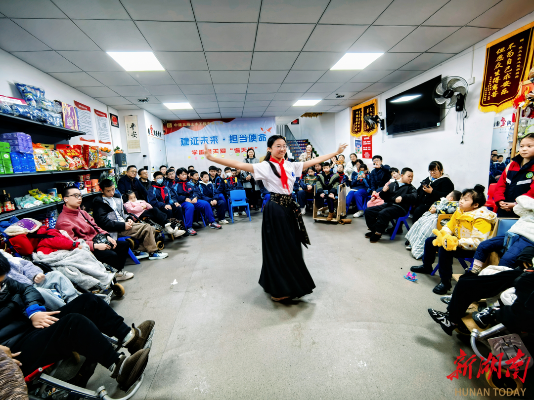 活动现场,2503班的同学们迅速融入了这个充满爱的大家庭。他们主动陪伴在“慢天使”们身边,用纯粹的爱打破了隔阂,他们带来的不是华成熟的舞台表演,而是不加修饰的真诚与温暖。相声的稚嫩笑点、独舞的舒展律动、歌声里的青涩真诚,都成为了治愈的力量,让现场变得柔软又充满希望。在奉献中,他们收获了成长与感动。那一刻,青春的活力与特殊儿童的天真无邪相互交融,奏响了一曲温暖而动人的乐章。