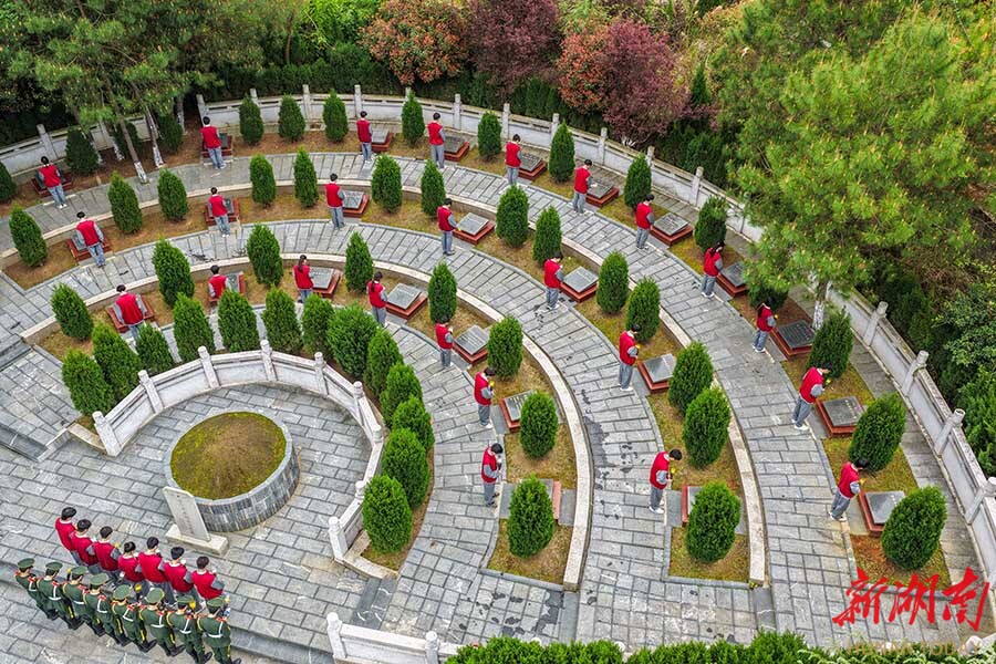 3月29日,道县陈树湘红色文化园内,道州玉潭学校师生在烈士墓前缅怀英烈。清明前夕,该校通过多种形式开展祭扫活动,传承红色精神,厚植爱国情怀。 蒋克青 蒋凭姣 摄影报道(湖南图片库)