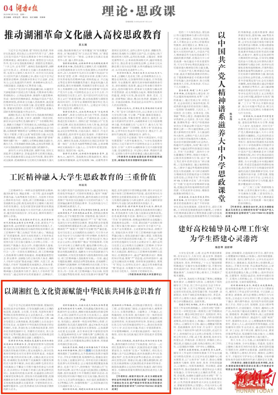 习近平总书记在湖南考察时强调,要搞好民族团结进步宣传教育,引导各族群众树立正确的祖国观、民族观、文化观、历史观,巩固和发展平等团结互助和谐的社会主义民族关系。三湘大地遍布红色印记,2300余处不可移动革命文物、480余处爱国主义教育基地,既是湖湘儿女浴血奋斗的历史见证,也是铸牢中华民族共同体意识的宝贵教材。当前,我省红色文化教育成效显著,但仍存在资源挖掘碎片化、传播形式同质化、育人协同性不足等问题。推动红色基因与共同体理念同频共振,关键要在路径创新上破题发力。