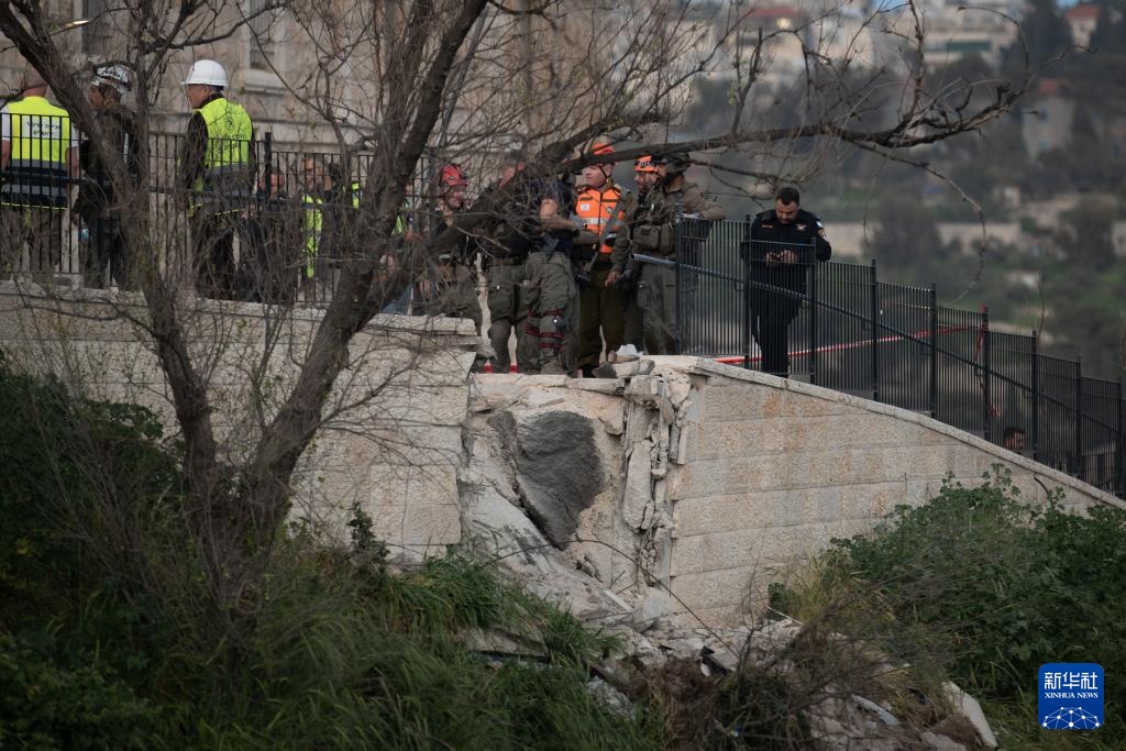 3月20日,耶路撒冷老城附近一处地点在导弹袭击中受损。这是应急反应人员在一处被导弹碎片波及的地点开展工作。