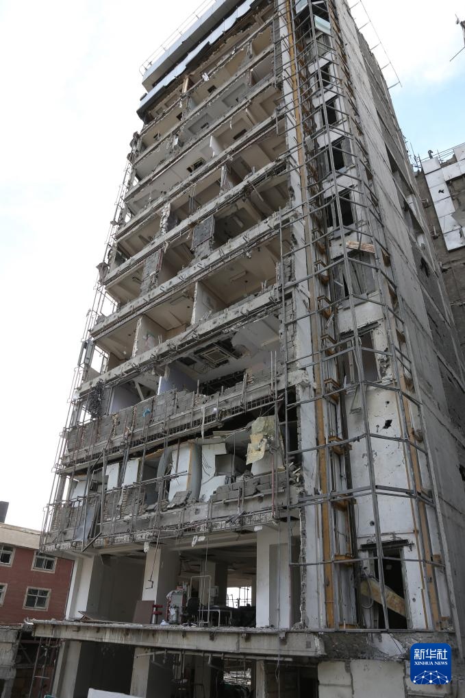 这是3月3日在伊朗德黑兰拍摄的一处在袭击中受损的建筑。