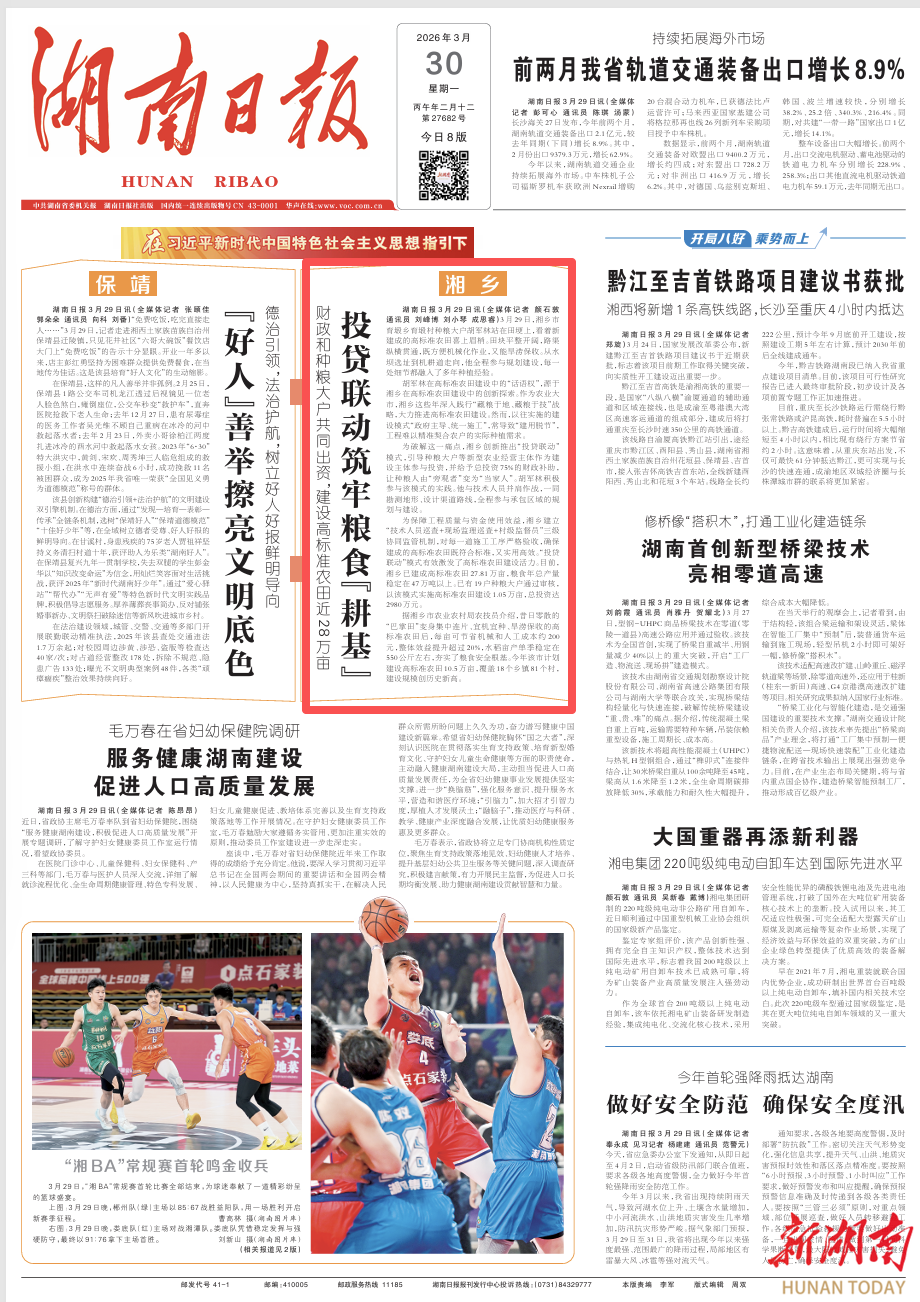 2026年3月30日湖南日报头版头条