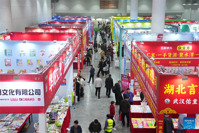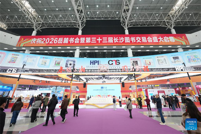 This photo taken on March 27, 2026 shows the 2026 Yuelu Book Fair and the 33rd Changsha Book Fair in Changsha, central China's Hunan Province.The fair kicked off here on Friday. Covering over 30,000 square meters, the main venue features eight exhibition zones and hosts more than 500 publishing and distribution companies from across the country. (Xinhua/Chen Zhenhai)