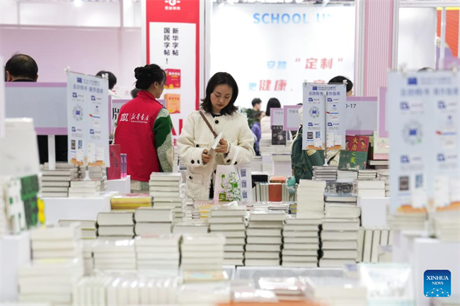 People select books at the 2026 Yuelu Book Fair and the 33rd Changsha Book Fair in Changsha, central China's Hunan Province, March 27, 2026.The fair kicked off here on Friday. Covering over 30,000 square meters, the main venue features eight exhibition zones and hosts more than 500 publishing and distribution companies from across the country. (Xinhua/Chen Zhenhai)