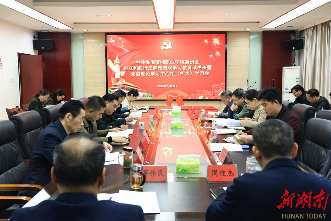 湖南日报·新湖南客户端3月30日讯(通讯员 吴可欣)3月27日,娄底潇湘职业学院举行树立和践行正确政绩观学习教育读书班暨党委理论学习中心组集中学习。校党委书记、督导专员周迎杰主持会议并授主题党课。