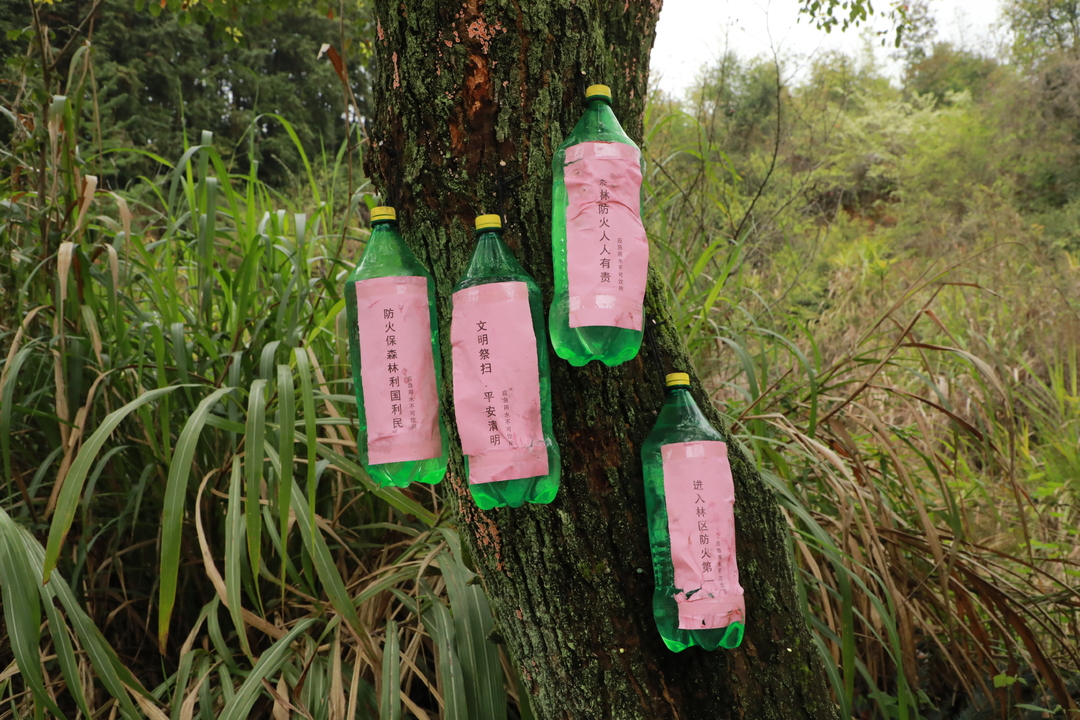 走进道塘村,每个上山扫墓的村民手中都会带着几个贴着红色标语的矿泉水瓶。这些看似普通的瓶子,既是强化防火意识的宣传工具,也是村里防火的“利器”。清明节前,该村发动村民收集废旧矿泉水瓶,统一灌装清水后,在主要墓区和山路沿线集中摆放,方便祭祀群众随取随用。针对墓区地形特点,该村还在主要登山路径每隔100米设置应急水源点,形成了“路径有补给、墓地能直供”的应急水源保障网络。