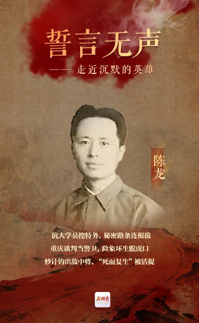 就这样,陈龙成为了保护毛泽东重庆之行的“三龙”之一,另外两人分别是龙飞虎和颜太龙。陈龙临行前,李克农解下佩带多年的左轮手枪送给他,周恩来握住他的手说:“我们大家都来做主席的警卫员,一定要做到万无一失!”
