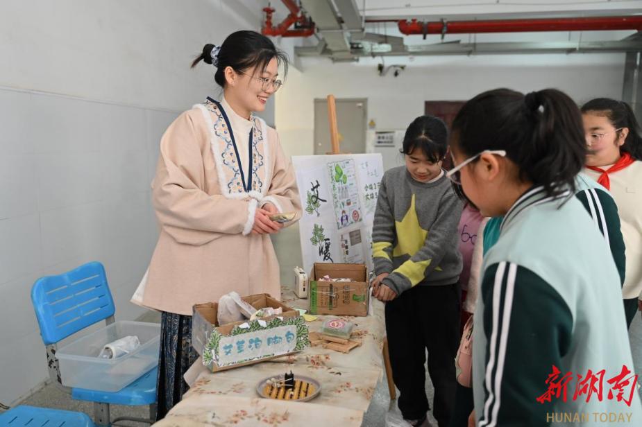 科学老师坐镇的中草药特色摊位,把爱心与科普融合,成了队员们的热门打卡地。摊位上不仅有薄荷、金银花等趣味中草药标本,更有师生们动手制作的艾草香包、草本手工香皂、艾草泡脚包等满含心意的好物。老师们带着队员们“闻香识草药”,解锁自然科学小知识;队员们也用亲手制作的好物传递温暖,把雷锋“毫不利己、专门利人”的精神,藏进了每一份带着草木清香的善意里。