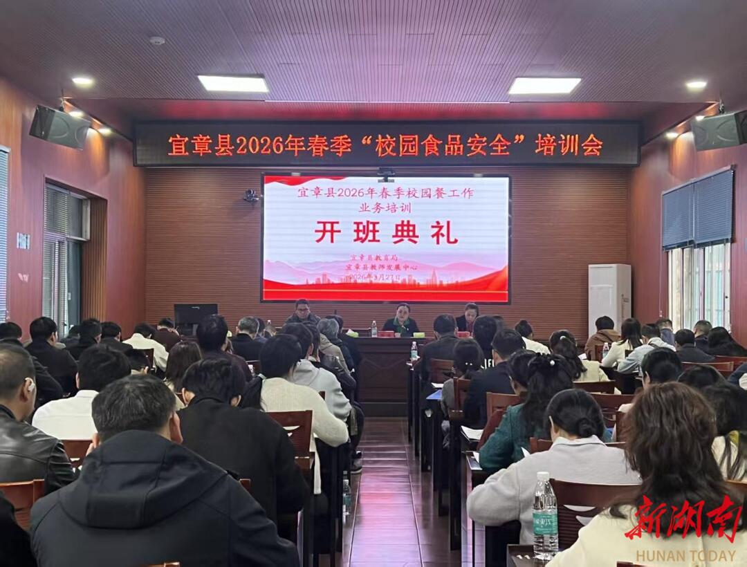 新湖南客户端3月30日讯(通讯员 王淑华 刘泽玉) 为深入贯彻落实全省中小学“校园餐”集中整治工作要求,全面提升全县校园食品安全与膳食经费管理水平,3月27日,宜章县教育局与县教师发展中心联合举办了2026年春季校园餐工作业务培训。来自全县各中小学校、幼儿园的食品安全总监、食品安全员及县教育局相关股室负责人等参加了培训,本次培训在县教育局大会议室举行。