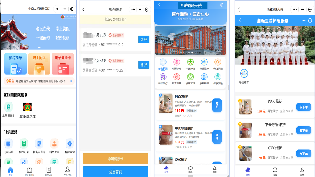 据介绍,患者只需关注中南大学湘雅医院微信公众号,点击“湘雅E健天使”,即可按流程进行预约。上门服务后还有双方评价和随访,以确保服务质量。