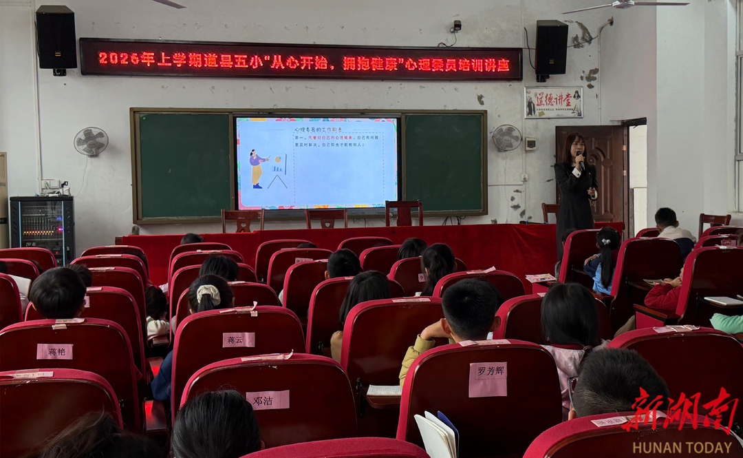科教新报·新湖南客户端讯(通讯员 蒋正争 章昳 熊雪楠)3月27日,道县第五小学开展“从心开始,拥抱健康”心理委员培训活动,充分发挥班级心理委员的桥梁纽带作用,为学校心理健康教育工作注入新活力。