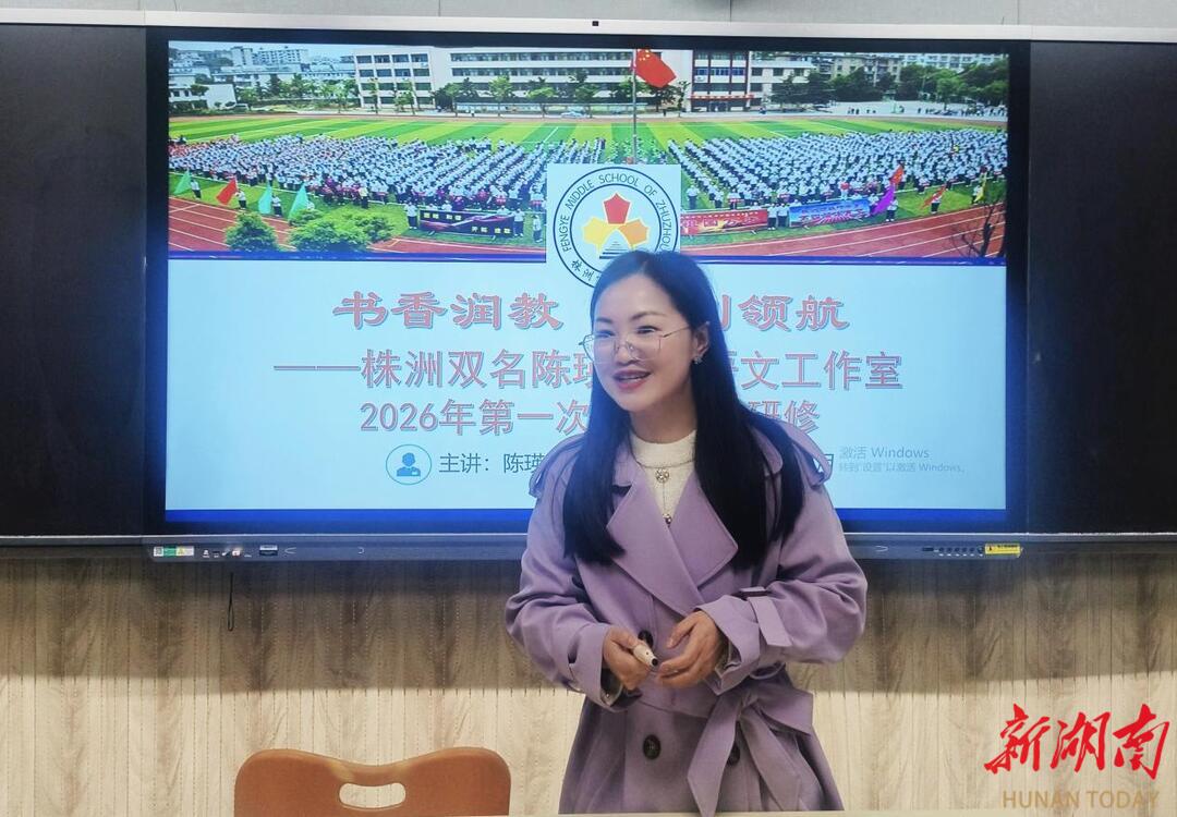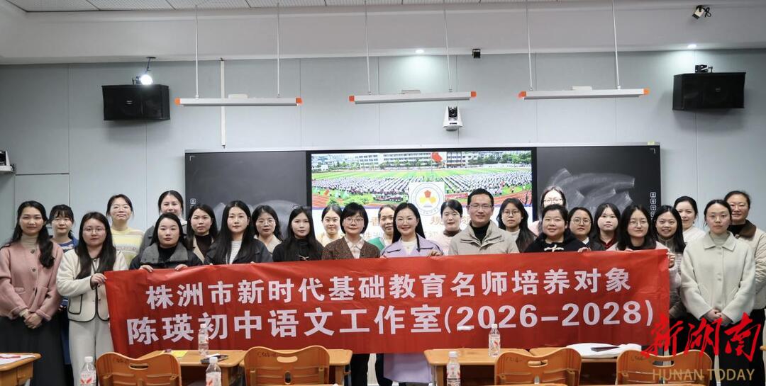 新湖南客户端3月30日讯(通讯员 易玉婷 陈陶 张晓)近日,株洲市“双名计划”陈瑛初中语文工作室授牌仪式暨2026年上学期首次集中研修活动,在长郡云龙实验学校顺利举办。株洲市教师培训中心工会主席、市“双名计划”项目负责人匡锋、株洲市语文教研员汤飞平、市首届“双名计划”语文名师杨煌等专家出席活动,与工作室全体成员齐聚一堂,以课堂为纽带,以教研为载体,在经典文墨中深植教学根基,在思想交流中凝聚育人共识,共赴一场语文教育的专业成长之约。