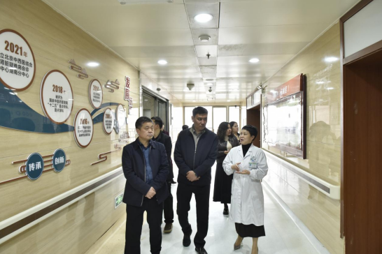 座谈结束后,阿不来提一行实地走访了老年病科、康复科、制剂中心、肾病科、中医文化长廊,现场观摩中医特色诊疗流程、制剂规范化生产环节,感受中医药文化底蕴,进一步直观了解该院中医诊疗与医院管理的特色亮点。