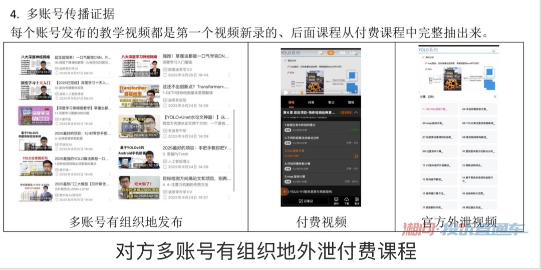 如果说小陈的遭遇是课程“注水”,那么小宇的经历则暴露了更恶劣的骗局。2024年11月,他支付8080元报名了湖南咕泡网络科技有限公司的“人工智能第十一期课程”。缴费后他收到的竟是已在网上外泄三个月的第八期录播课程,而承诺的论文指导服务超过6个月没有回复。陈同学在投诉中称,该公司通过至少10个B站账号系统性公开传播付费课程视频,“明知课程已外泄仍以全价销售,构成欺诈”。