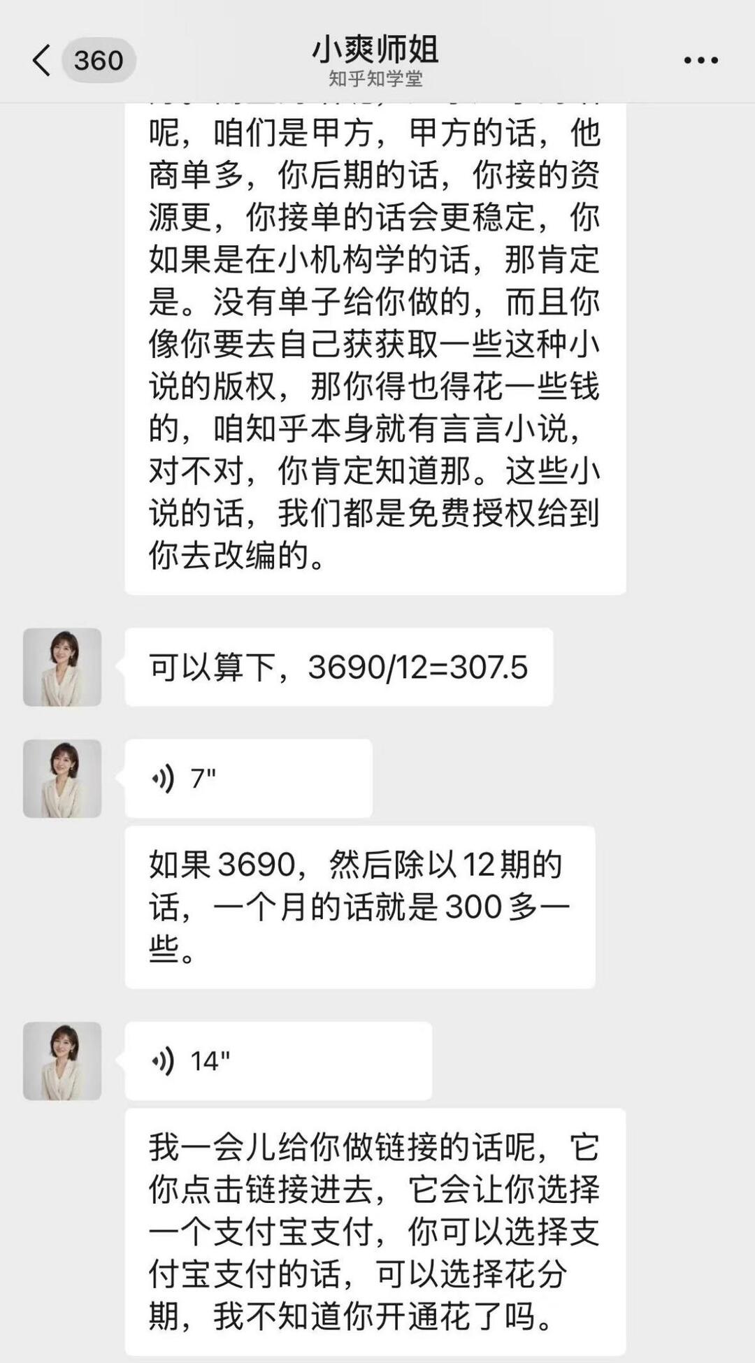 真正让他警觉的是后续推销。4980元的标价对学生是“巨大的数字”。对方主动降价到3690元,并建议:“用花呗分期,12期每月300出头。”
