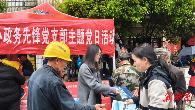 湖南日报·新湖南客户端3月30日讯(通讯员 李倩)3月24日,正值苏仙区坳上镇的赶集日,绵绵细雨为春日集市增添了几分凉意。郴州市政务服务中心政务先锋党支部、郴州市社会保险服务中心组织党员干部走出机关,将政策宣讲的“课堂”搬进了坳上市场,让便民服务在雨中传递温暖。