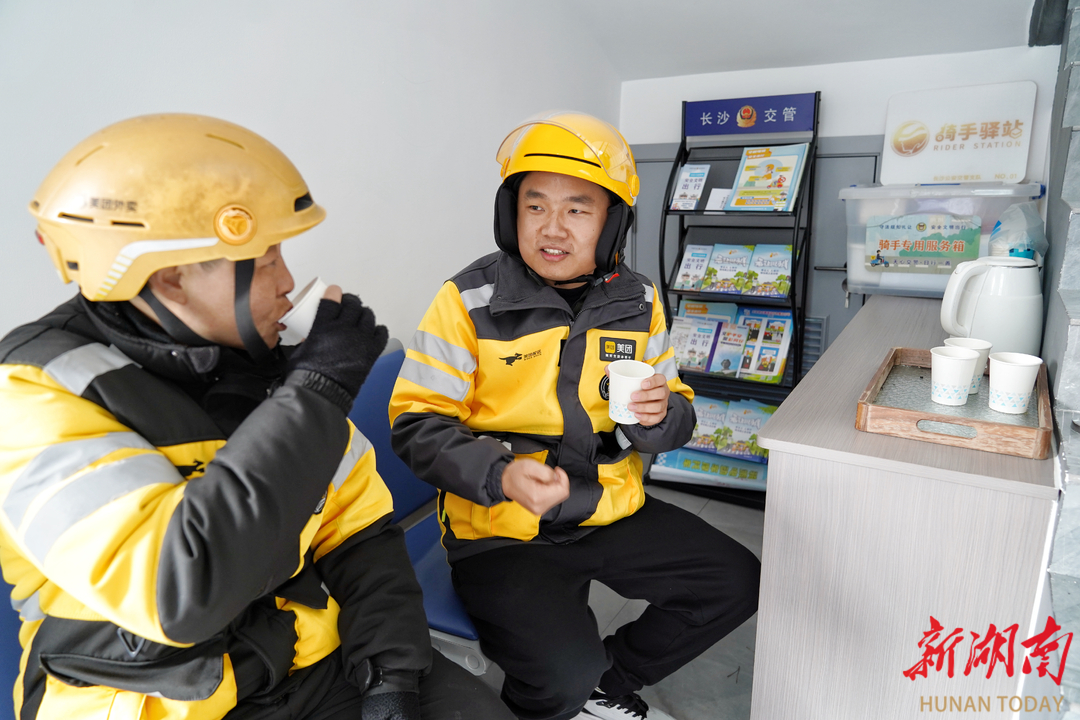 外卖骑手在“骑手驿站”休憩。湖南日报全媒体记者 徐行 通讯员 石双权 摄