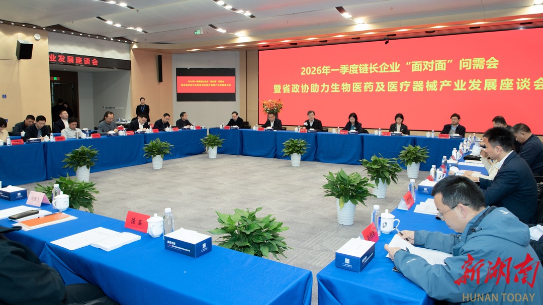湖南日报3月30日讯(全媒体记者 唐亚新 通讯员 王娟)3月30日,2026年一季度链长企业“面对面”问需会暨省政协助力生物医药及医疗器械产业发展座谈会在长沙召开。省政协副主席、省工商联主席、省生物医药及医疗器械产业链链长张健主持会议。